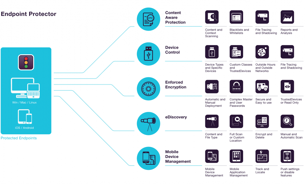 Endpoint Protector, aşağıdaki temel özellikleri sunar: